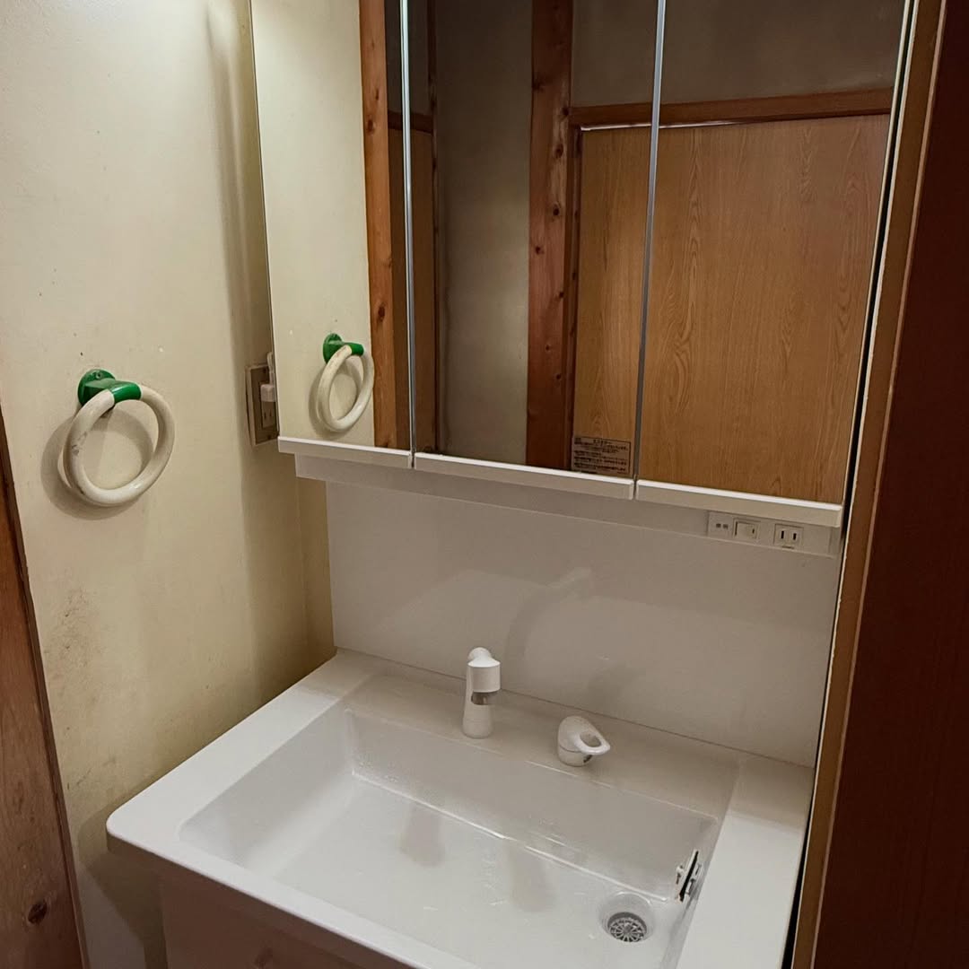 キッチン、ユニットバス、洗面化粧台、壁クロス、床張替え、シーリングライト、洗濯機パン、コンセントをやりかえてかなり綺麗になりました。