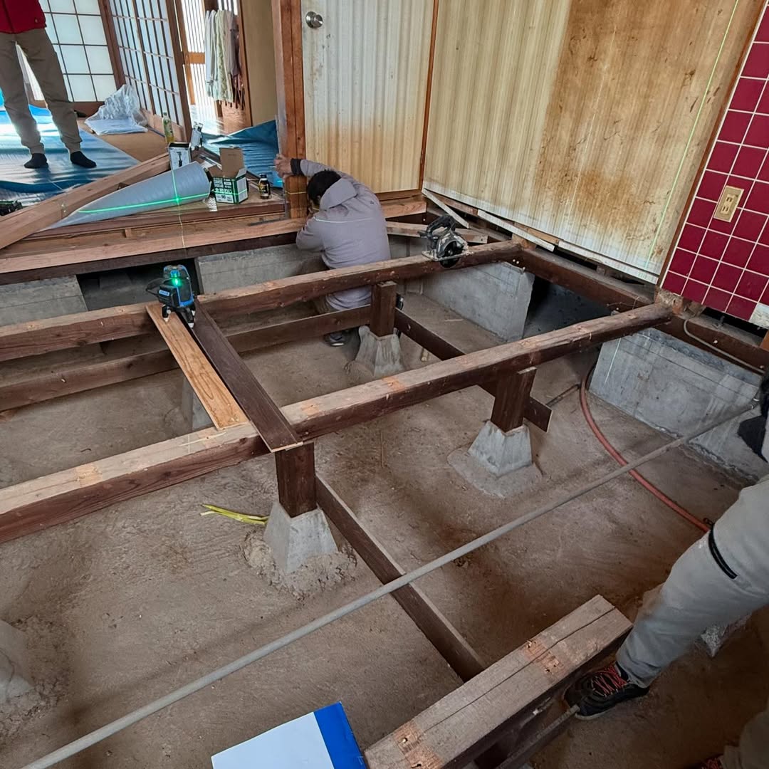 床下はシロアリ被害にあってる箇所があり根太と大引きの一部をやりかえました!