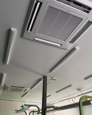 工場の空調機新設工事完成しました。